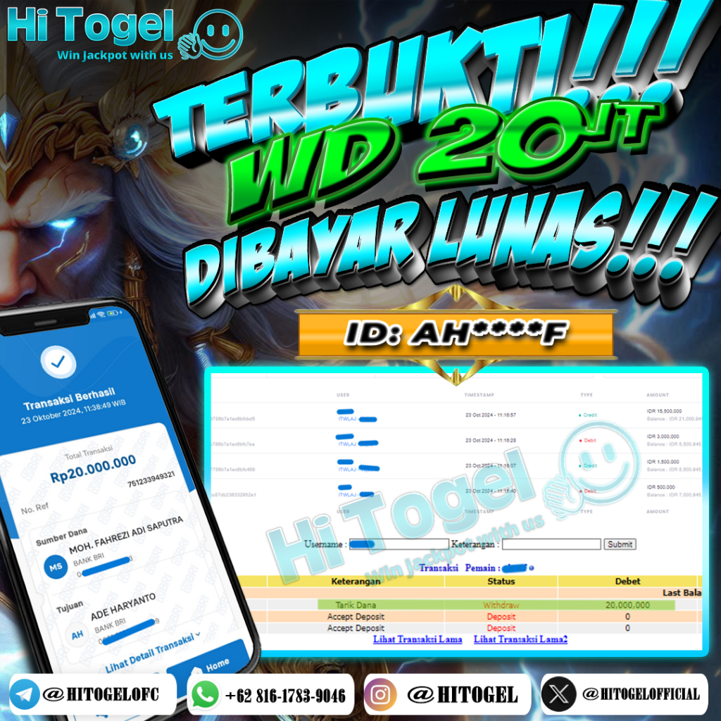 Bukti JP & WD Pemain HiTogel #216 hitogelofficial October 23, 2024 Bukti WD Bukti JP & WD Pemain HiTogel #216 Selamat atas kemenangannya!!User ID : ah****fPermainan: Snakes & Ladder (Pragmatic Live Games)Total Withdraw: Rp 20,000.000,-LUNAS!!!