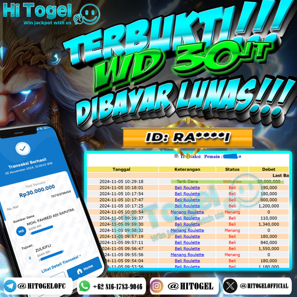 Bukti JP & WD Pemain HiTogel #236 hitogelofficial November 5, 2024 Bukti WD Bukti JP & WD Pemain HiTogel #236 Selamat atas kemenangannya!!User ID : ra****iPermainan: Rouletter (Live Games)Total Withdraw: Rp 30,000.000,-LUNAS!!!