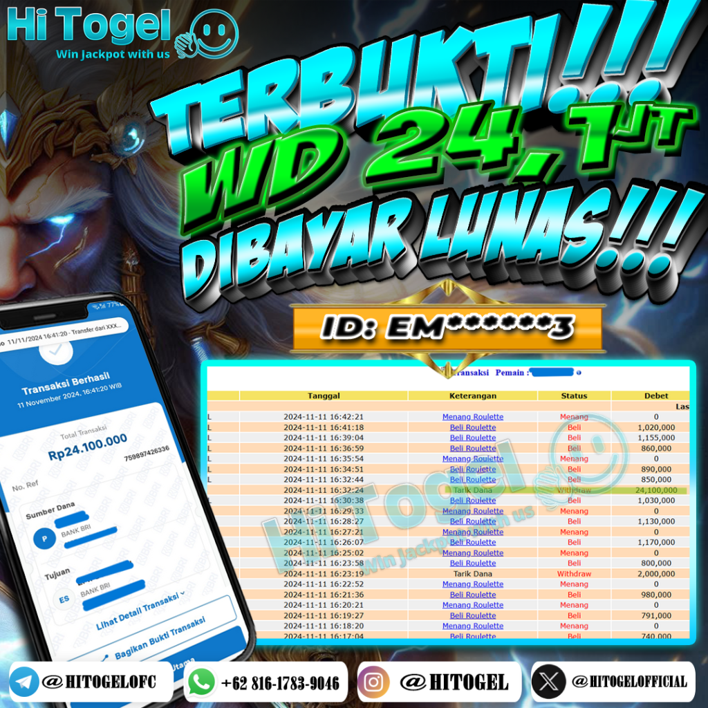 Bukti JP & WD Pemain HiTogel #247 hitogelofficial November 11, 2024 Bukti WD Bukti JP & WD Pemain HiTogel #247 Selamat atas kemenangannya!!User ID : em****3Permainan: Roulette (Live Games)Total Withdraw: Rp 24,100.000,-LUNAS!!!