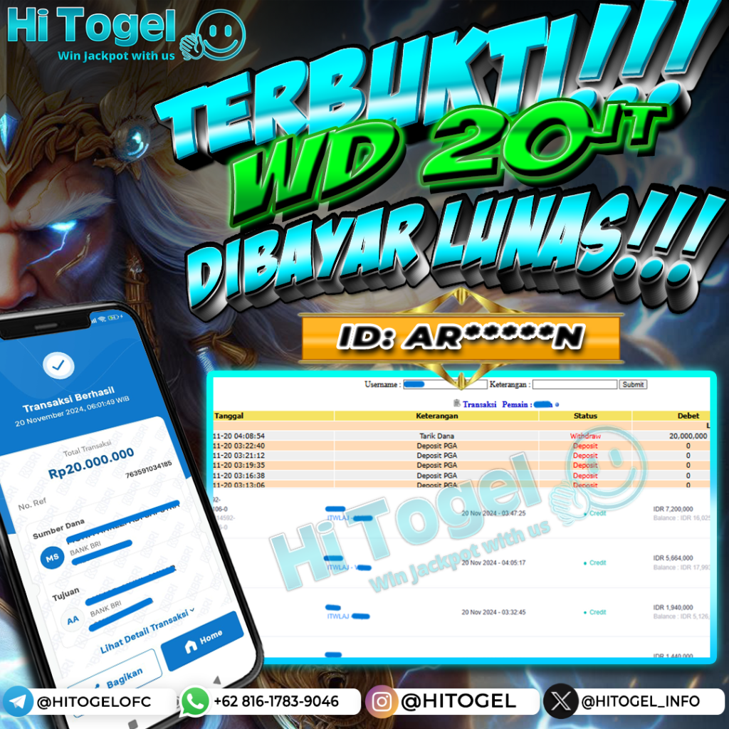 Bukti JP & WD Pemain HiTogel #262 hitogelofficial November 20, 2024 Bukti WD Bukti JP & WD Pemain HiTogel #262 Selamat atas kemenangannya!!User ID : ar***nPermainan: Mahjong Ways (PG Soft) Total Withdraw: Rp 20,000.000,-LUNAS!!!