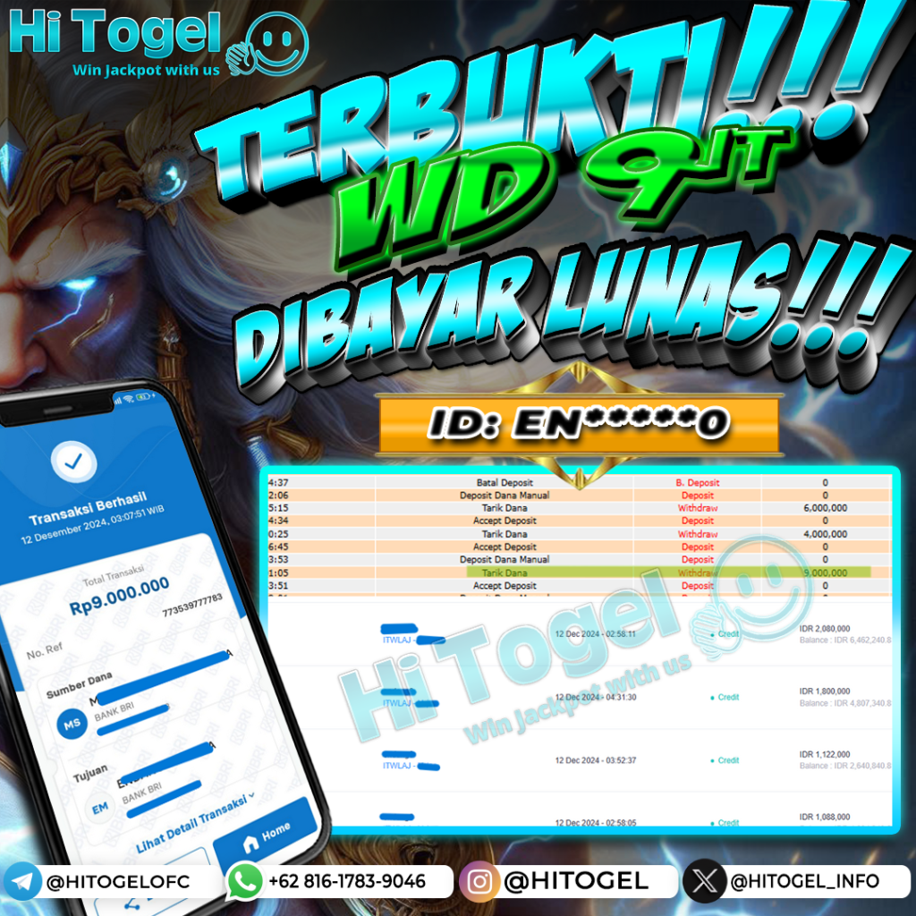 Bukti JP & WD Pemain HiTogel #299 hitogelofficial December 12, 2024 Bukti WD Bukti JP & WD Pemain HiTogel #299 Selamat atas kemenangannya!!User ID : en****0Permainan: Mahjong Ways 2 (PG Soft)Total Withdraw: Rp 9,000.000,-LUNAS!!!