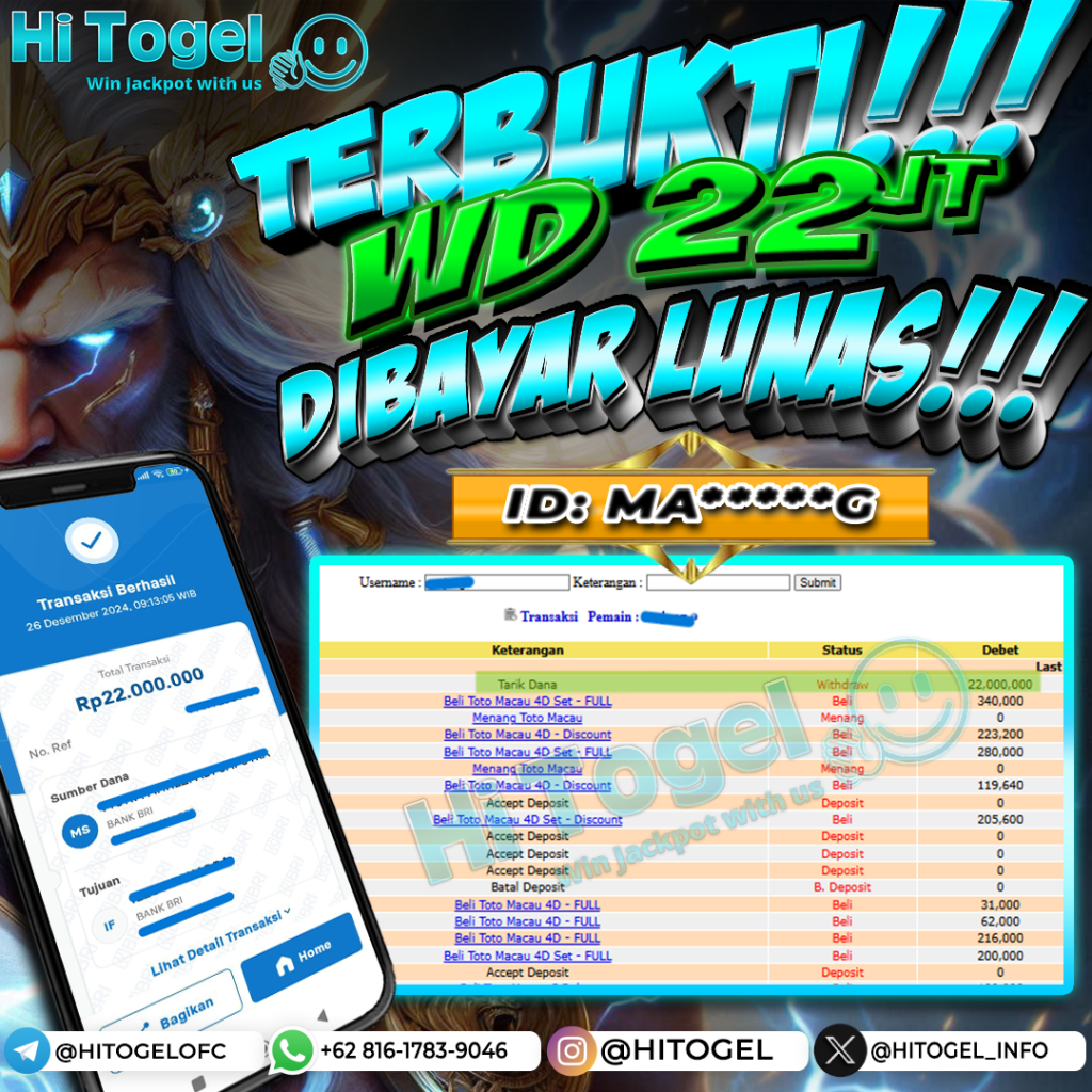Bukti JP & WD Pemain HiTogel #317 hitogelofficial December 26, 2024 Bukti WD Bukti JP & WD Pemain HiTogel #317 Selamat atas kemenangannya!!User ID : ma*****gPermainan: TTM4D Periode 10313 (Result: 1670Total Withdraw: Rp 22,000.000,-LUNAS!!!