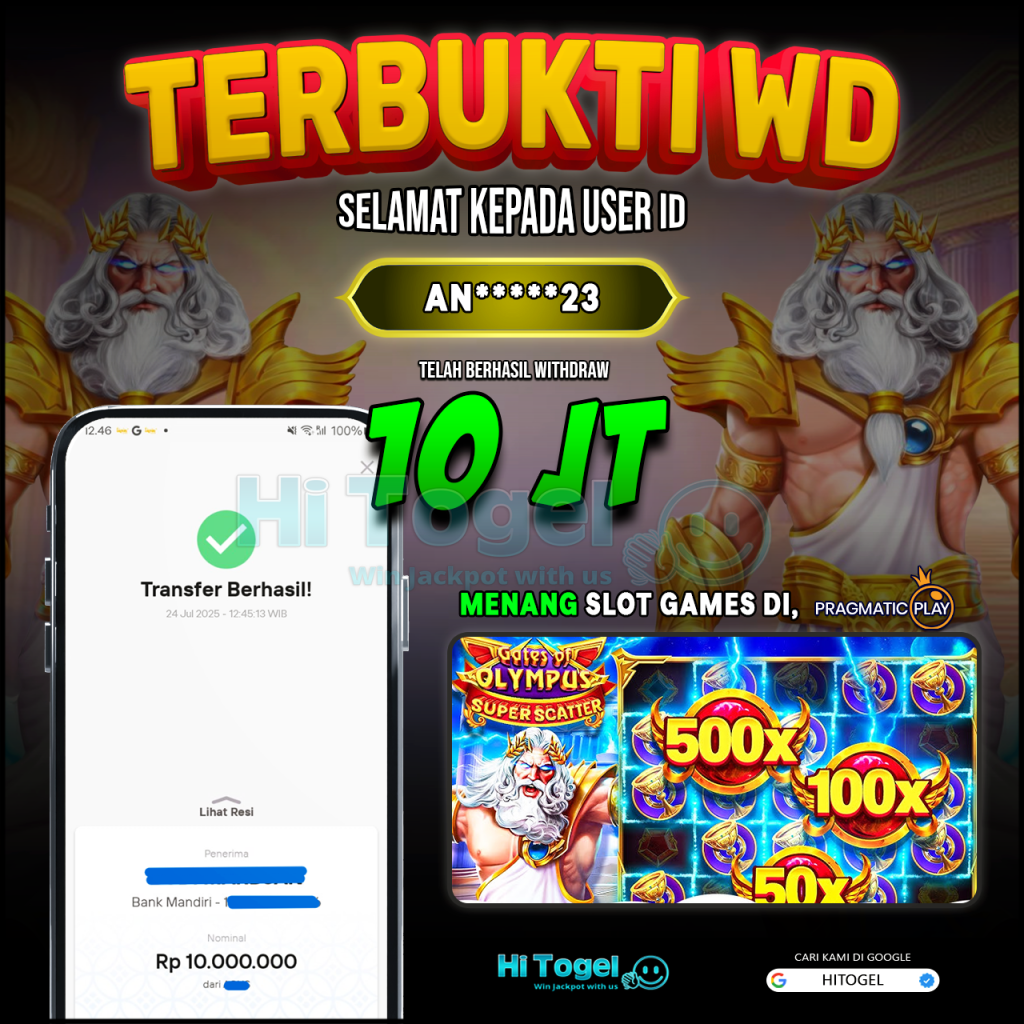 Bukti JP & WD Pemain HiTogel #402 hitogelofficial July 24, 2025 Bukti WD Bukti JP & WD Pemain HiTogel #402 Selamat atas kemenangannya!!User ID : an*****23Permainan: Gates Of Olympus Super Scatter (Pragmatic Play)Total Withdraw: Rp 10,000.000,-LUNAS!!!