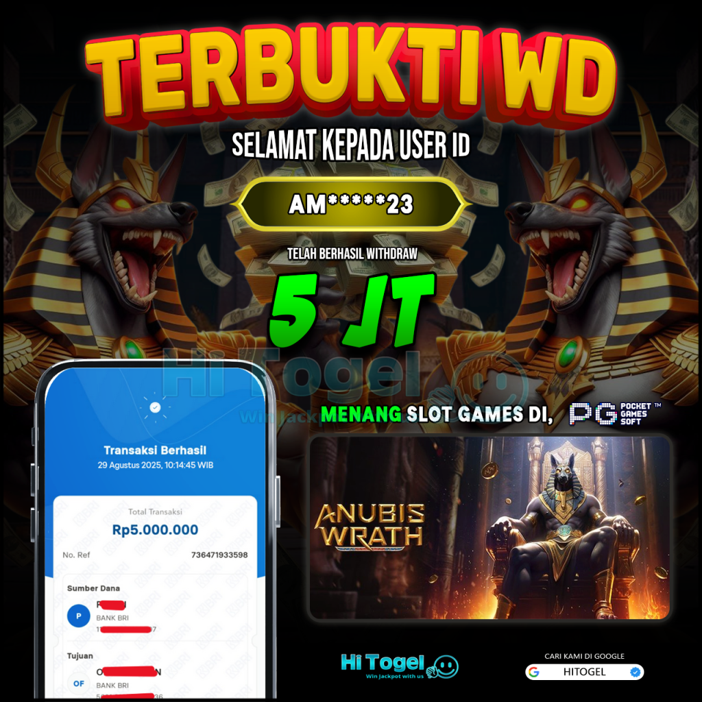 Bukti JP & WD Pemain HiTogel #432 hitogelofficial August 29, 2025 Bukti WD Bukti JP & WD Pemain HiTogel #432 Selamat atas kemenangannya!!User ID : am****23Permainan: Anubis Wrath (PG Soft)Total Withdraw: Rp 5,000,000,-LUNAS!!!