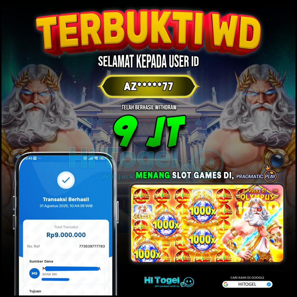 Bukti JP & WD Pemain HiTogel #434 hitogelofficial August 31, 2025 Bukti WD Bukti JP & WD Pemain HiTogel #434 Selamat atas kemenangannya!!User ID : az****77Permainan: Gates Of Olympus 1000 (Pragmatic Play)Total Withdraw: Rp 9,000,000,-LUNAS!!!
