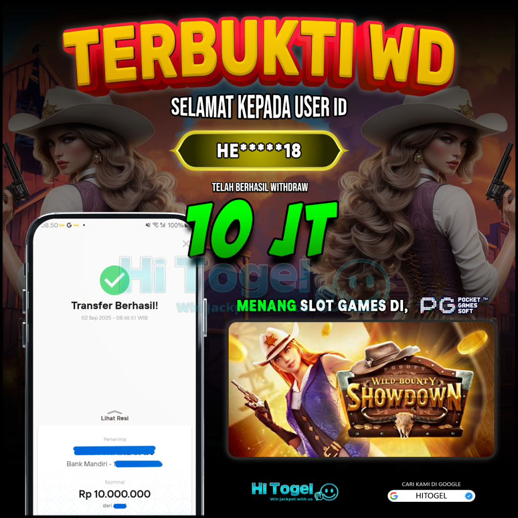 Bukti JP & WD Pemain HiTogel #436 hitogelofficial September 2, 2025 Bukti WD Bukti JP & WD Pemain HiTogel #436 Selamat atas kemenangannya!!User ID : he****18Permainan: Wild Bounty Showdown (PG Soft)Total Withdraw: Rp 10,000,000,-LUNAS!!!