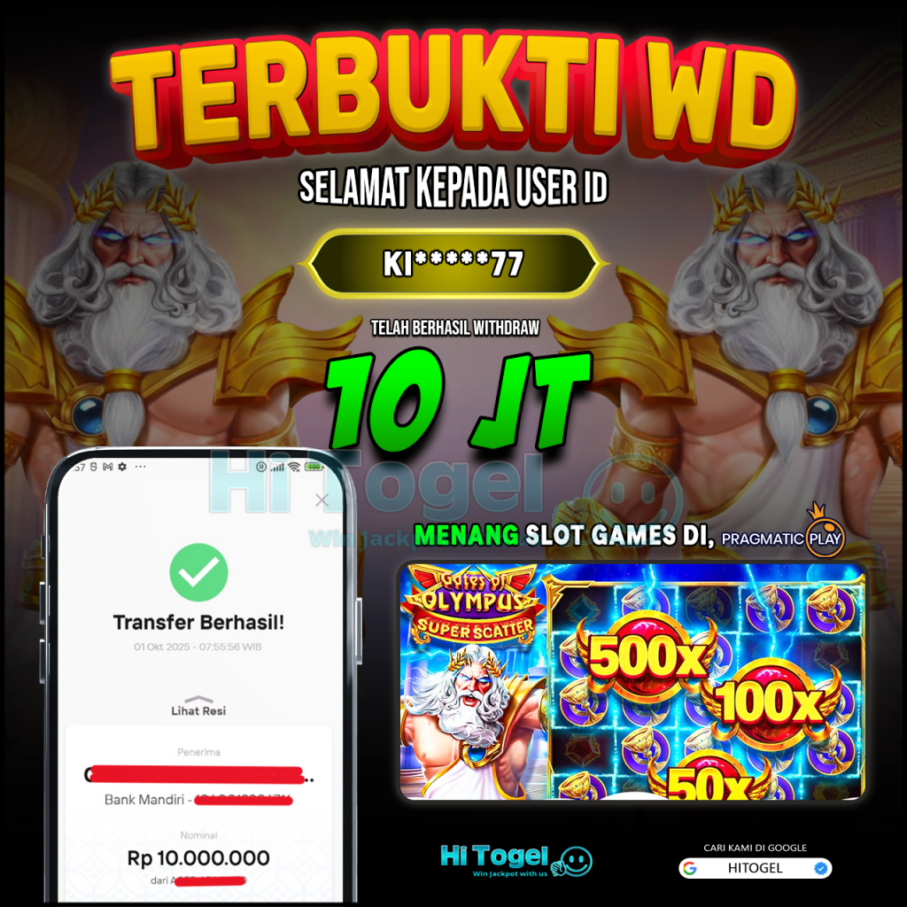 Bukti JP & WD Pemain HiTogel #463 hitogelofficial October 1, 2025 Bukti WD Bukti JP & WD Pemain HiTogel #463 Selamat atas kemenangannya!!User ID : ki***77Permainan: Gates Of Olympus Super Scatter (Pragmatic Play)Total Withdraw: Rp 10,000,000,-LUNAS!!!